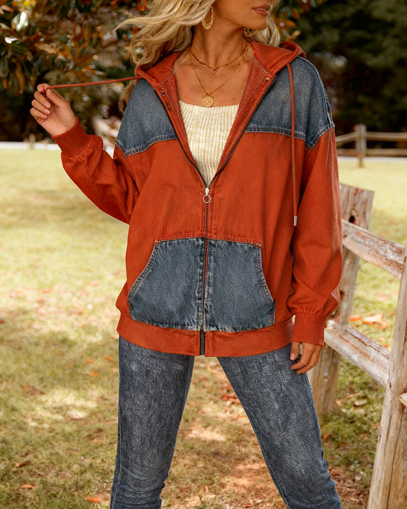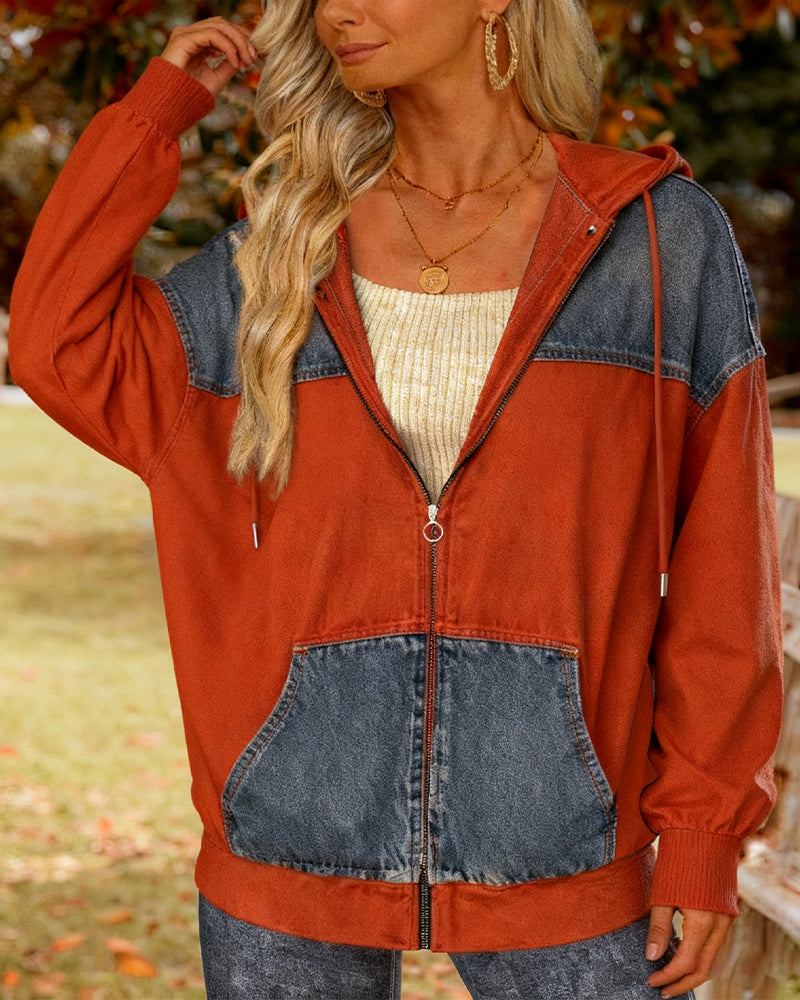 NEW Icon1 Denim Patchwork Hooded Sweatshirt Jacket
