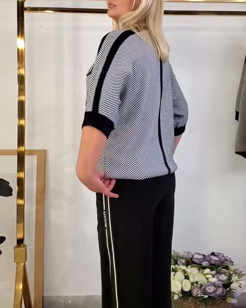 SPECIFICATIONS Top Type: Blouses Style: Casual Material: Cotton Blends Occasion: Daily Neckline: V neck_V Pattern Type: Striped Sleeve Length: 3/4 Sleeve Fit Type: Regular Season: Spring,Summer Details: Buttons Package Includes: 1 x Blouse SIZE TABLE Size Bust Length Sleeves Shoulder CM INCH CM INCH CM INCH CM INCH S 90 35.4...