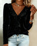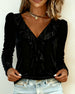 SPECIFICATIONS Top Type: Tops Style: Casual Material: Velvet Occasion: Daily Neckline: V neck_V Pattern Type: Solid Color Sleeve Type: Regular sleeve Sleeve Length: Long Sleeve Fit Type: Regular Season: Fall,Winter Details: Ruffle Package Includes: 1 x Top SIZE TABLE Size Bust Length CM INCH CM INCH S 92 36.22 65 25.59 M 96 37.8 66....
