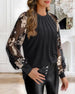 Shirred Cross Design V-Neck Sequin Patchwork Top