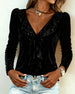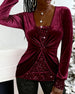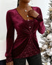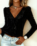 SPECIFICATIONS Top Type: Tops Style: Chic Material: Sequins,Velvet Occasion: Daily,Party Neckline: V neck_V Pattern Type: Solid Color Sleeve Type: Regular sleeve Fit Type: Regular Season: Fall,Winter Details: Patchwork,Shirred Package Includes: 1 x Top SIZE TABLE Size Bust Length CM INCH CM INCH S 97 38.19 65 25.59 M 101 39.76...