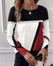 V-Neck Contrast Solid Color Long-Sleeved Top