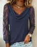 SPECIFICATIONS Top Type: Tops Style: Casual Material: Cotton Blends,Lace Occasion: Daily Neckline: Draped Collar Pattern Type: Solid Color Sleeve Type: Regular sleeve Sleeve Length: Long Sleeve Fit Type: Regular Season: Fall,Winter Package Includes: 1 x Top SIZE TABLE Size Bust Length CM INCH CM INCH S 97 38.19 65 25.59 M 101 ...