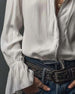 Stand-Collar Bell Sleeve Blouse