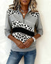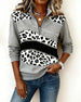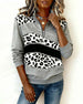 Leopard Print Shimmering With Half-Zip Collar Sweatshirt