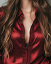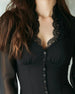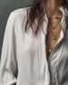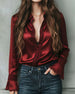 Satin Lace-Paneled Lapel Blouse