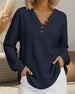 Button-Down Waffle Long-Sleeved Top