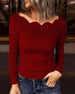 SPECIFICATIONS Top Type: Tops Style: Casual Material: Velvet Occasion: Daily Neckline: Round Neck Pattern Type: Solid Color Sleeve Type: Ruffle Sleeve Sleeve Length: Long Sleeve Fit Type: Regular Season: Fall,Winter Package Includes: 1 x Top SIZE TABLE Size Bust Length CM INCH CM INCH S 97 38.19 65 25.59 M 101 39.76 66.5 26.18...