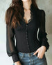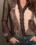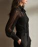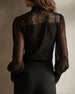 Lace-Paneled Mesh Long-Sleeve Blouse