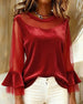 Ruffled Sleeve Bow Elegant Blouse