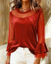 Solid Color Lantern Sleeve Fashion Blouse