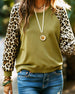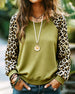 Leopard Print Raglan Sleeve Crew Neck Sweatshirt