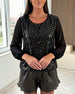 Sequined Off-Shoulder Long-Sleeve Top