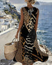 Patchwork Leopard Print Sleeveless Long Dress
