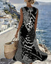 Sleeveless V-Neck Placement Print Dress