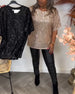 Balloon sleeve round neck sequin top