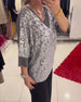 V-neck pleated sequined elegant top