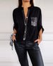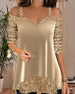 Casual solid color sequin V-neck top