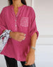 Sequined lapel slit casual shirt