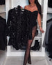 Sequined Sleeves Elegant Slit Dress