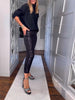 Paneled sequin button casual top