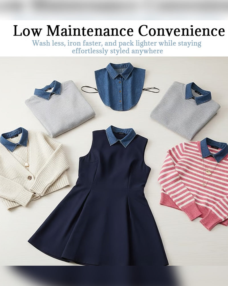 This detachable denim dickey collar gives you that perfectly styled, layered look in seconds, without adding extra heat or fabric where you don’t want it.