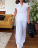 SPECIFICATIONS Style: Casual Top Type: Blouses Category: Sets Material: 30% Linen 70% Cotton Pattern Type: Solid Color Neckline: Lapel Sleeve Type: Regular sleeve Sleeve Length: Short Sleeve Pants Type: Straight Leg Pants Length: Long Waist Type: High Waist Fit Type: Regular Season: Spring,Summer Details: Buttons Occasion: Daily Package Inclu...
