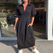 SPECIFICATIONS Style: Casual Material: 80% Polyester, 20% Cotton Dress Type: A-Line Dress Length: Maxi Neckline: Lapel Pattern Type: Solid Color Sleeve Type: Regular sleeve Sleeve Length: Half Sleeve Details: Pocket Fit Type: Regular Season: Fall,Winter Occasion: Daily Package Includes: 1 x Dress SIZE TABLE Size Bust Length Sleeves CM...