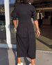 SPECIFICATIONS Style: Elegant,Business Material: 50% Polyester, 45% Artificial Cotton, 5% Spandex Dress Type: A-Line Dress Length: Midi Neckline: Round Neck Pattern Type: Solid Color Sleeve Type: Regular sleeve Sleeve Length: Long Sleeve Details: Shirred Fit Type: Regular Season: Spring,Fall,Winter Occasion: Daily Package Includes: 1 x Dress ...