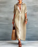 Icon1 Elegant Lapel-Collar Draped Shirt Dress