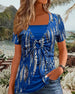 Fake Two-Piece Lace-Up Leopard Print T-Shirt
