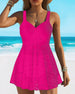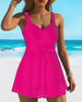 SPECIFICATIONS Style: Vacation Material: 82% Chinlon,18% Spandex Occasion: Vacation Pattern Type: Solid Color Sleeve Length: Sleeveless Top Type: Swimdress Bra Type: Wireless Bra Fit Type: Skinny Details: Patchwork,Backless,Lace Up,Lace Package Includes: 1 x Swimdress SIZE TABLE Size Bust Waist Hip Under bust CM INCH CM INCH CM INCH CM INC...