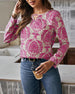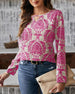 SPECIFICATIONS Top Type: Blouses Style: Casual Material: 5% Spandex, 95% Polyester Occasion: Daily, Vacation Neckline: Round Neck Pattern Type: Print Sleeve Type: Dropped shoulder Sleeve Length: Long Sleeve Fit Type: Regular Season: Spring, Summer Package Includes: 1 x Blouse SIZE TABLE Size Bust Length CM INCH CM INCH S 95 37.40 68...
