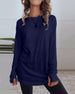 SPECIFICATIONS Top Type: Tops Style: Casual Material: Cotton Blends Occasion: Daily Neckline: V neck_V Pattern Type: Solid Color Sleeve Type: Regular sleeve Sleeve Length: Long Sleeve Fit Type: Regular Season: Spring, Fall, Winter Package Includes: 1 x Top SIZE TABLE Size Bust Length CM INCH CM INCH S 104 40.94 70 27.56 M 110 43.3...