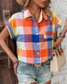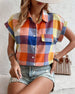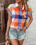 SPECIFICATIONS Top Type: Shirt Style: Casual, Business Material: Cotton Blends Occasion: Daily, Work Neckline: Lapel Pattern Type: Plaid Sleeve Type: Bat sleeve Sleeve Length: Short Sleeve Fit Type: Regular Season: Summer Details: Buttons Package Includes: 1 x Shirt SIZE TABLE Size Bust Length CM INCH CM INCH S 95...