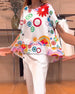 SPECIFICATIONS Top Type: Tops Style: Casual Material: 5% Spandex, 95% Polyester Occasion: Daily Neckline: Round Neck Pattern Type: Print Sleeve Type: Regular sleeve Sleeve Length: Short Sleeve Fit Type: Regular Season: Spring, Summer, Fall Details: Patchwork Package Includes: 1 x Top SIZE TABLE Size Bust Front length Ba...