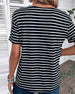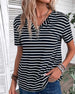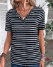 SPECIFICATIONS Top Type: T-shirt Style: Casual Material: Cotton Blends Occasion: Daily, Vacation Neckline: V neck_V Pattern Type: Striped Sleeve Type: Regular sleeve Sleeve Length: Short Sleeve Fit Type: Regular Season: Spring, Summer Details: Buttons Package Includes: 1 x T-shirt SIZE TABLE Size Bust Length Sleeve Length...