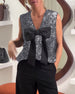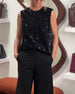 Shirred Cross Design V-Neck Sequin Patchwork Top