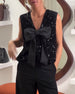 SPECIFICATIONS Top Type: Tank Top Style: Chic Material: Cotton Blends Occasion: Daily Neckline: Round Neck Pattern Type: Sequin,Solid Color Sleeve Length: Sleeveless Fit Type: Regular Season: Fall,Winter Details: Bowknot Package Includes: 1 x Tank Top SIZE TABLE Size Bust Length CM INCH CM INCH S 97 38.19 65 25.59 M 101 39.76 ...