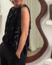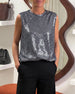 Sexy Padded Shoulder Sleeveless Sequined Hip Skirt