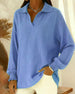 100% Cotton Wide-Collar Solid Color Casual Blouse