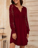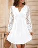 SPECIFICATIONS Style: Casual Material: Cotton Blends Dress Type: A-Line Dress Length: Above-knee Neckline: V neck_V Pattern Type: Solid Color Sleeve Type: Regular sleeve Sleeve Length: Long Sleeve Details: Lace Fit Type: Regular Season: Fall,Winter Occasion: Daily Package Includes: 1 x Dress SIZE TABLE Size Bust Length CM INCH CM IN...