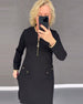 SPECIFICATIONS Style: Casual Material: Cotton Blends Dress Type: Shift dress Dress Length: Knee Length Neckline: Stand Collar Pattern Type: Color Block Sleeve Type: Regular sleeve Sleeve Length: Long Sleeve Details: Pocket,Zipper Fit Type: Regular Season: Fall,Winter Occasion: Daily Package Includes: 1 x Dress SIZE TABLE Size Bus...