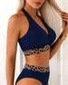Ribbed Leopard Color Block Bikini
