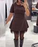 SPECIFICATIONS Style: Casual Material: Cotton Blends Dress Type: A-Line Dress Length: Above-knee Neckline: Round Neck Sleeve Type: Regular sleeve Sleeve Length: Short Sleeve Details: Patchwork Fit Type: Regular Season: Spring,Fall,Winter Occasion: Daily Package Includes: 1 x Dress SIZE TABLE Size Bust Length CM INCH CM INCH S 97 38.19...
