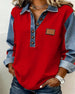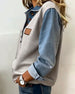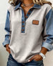 Stylish Denim Patchwork Long-Sleeved Sweatshirt