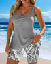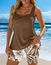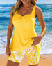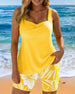 Two-Piece Body-Covering Printed Boxer Swimsuit