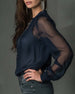 Half-Zip Mesh Long-Sleeve Blouse